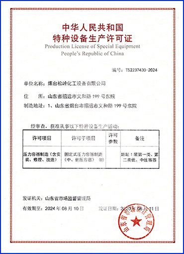 松嶺化工專注化工設備行業15年,集科研、開發、設計、 生產于一體的高新技術企業,還具備設計、制造D1、D2類壓力容器資質。